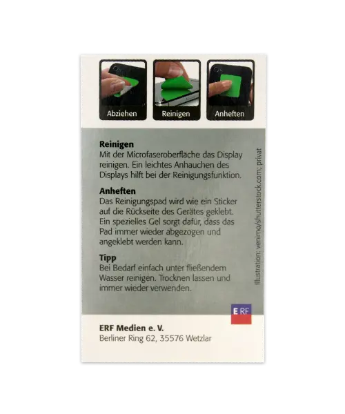 Verpackung: | Reiniger auf Papierkarte als Set im Polybeutel |