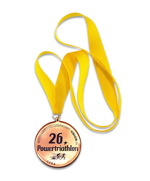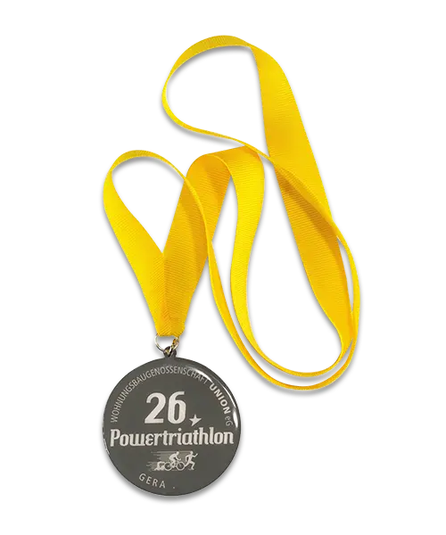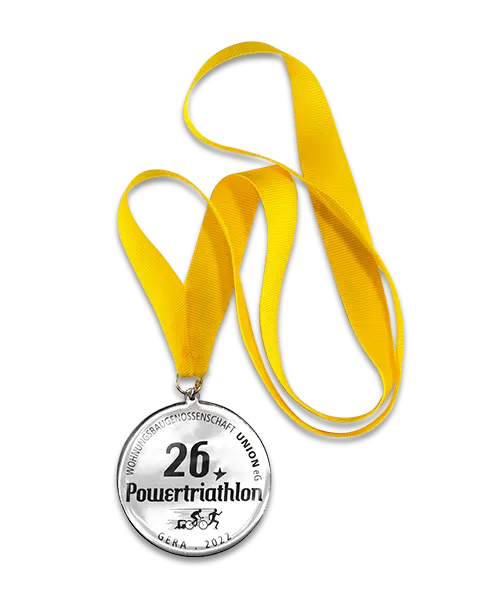 Medaille bedruckt „26. Powertriathlon Gera“
